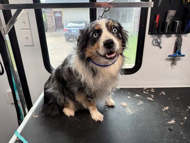 No cramped salons. No messy cars. No wasted time. Just a clean, calm grooming experience pulled right to your driveway, because your dog deserves to look as sharp as you do.